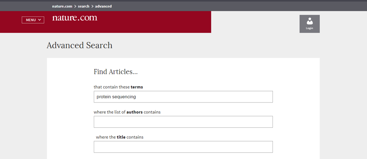 The database nature.com provides a very user-friendly platform for article and journal searching. It is easy to look for articles and journals for referencing reports or assignments. The search button is a straightforward and self-explanatory method to look for articles.